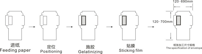 1、飛達送紙;2、撥銷定位功能保證貼膜位置的準確;3、輪轉自動滾膠,保證膠量均勻;4、采用無級變速機調節貼膜長度,方便可靠。